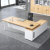 Bàn giám đốc hiện đại BGDM-01 được làm bằng gỗ công nghiệp MFC dán melamine cao cấp, chân sắt sươn tĩnh điện cao cấp.mặt bàn hình chữ nhật, yếm bàn được trang trí hoa văn nổi bật mang lại không gian sang trọng cho căn phòng của bạn. Bàn có mặt yếm bo tròn, có các hình khối tạo cảm giác tinh tế, sang trọng. Mặt bàn có vân kẻ đẹp mắt, sang trọng, có thiết kế khu vực riêng để máy tính, chuột tiện lợi. Bàn mang tính thẩm mỹ cao và giá trị sử dụng lâu dài, được nhiều cá nhân và tổ chức lựa chọn. Thường được dùng cho phòng giám đốc, trưởng phòng…