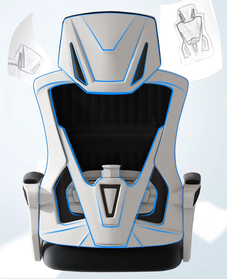 – Lưng ghế được thiết kế với độ cong nhẹ phù hợp với khung người, xuôi theo khung đốt sống, giúp bảo vệ cột sống và tư thế ngồi khoa học