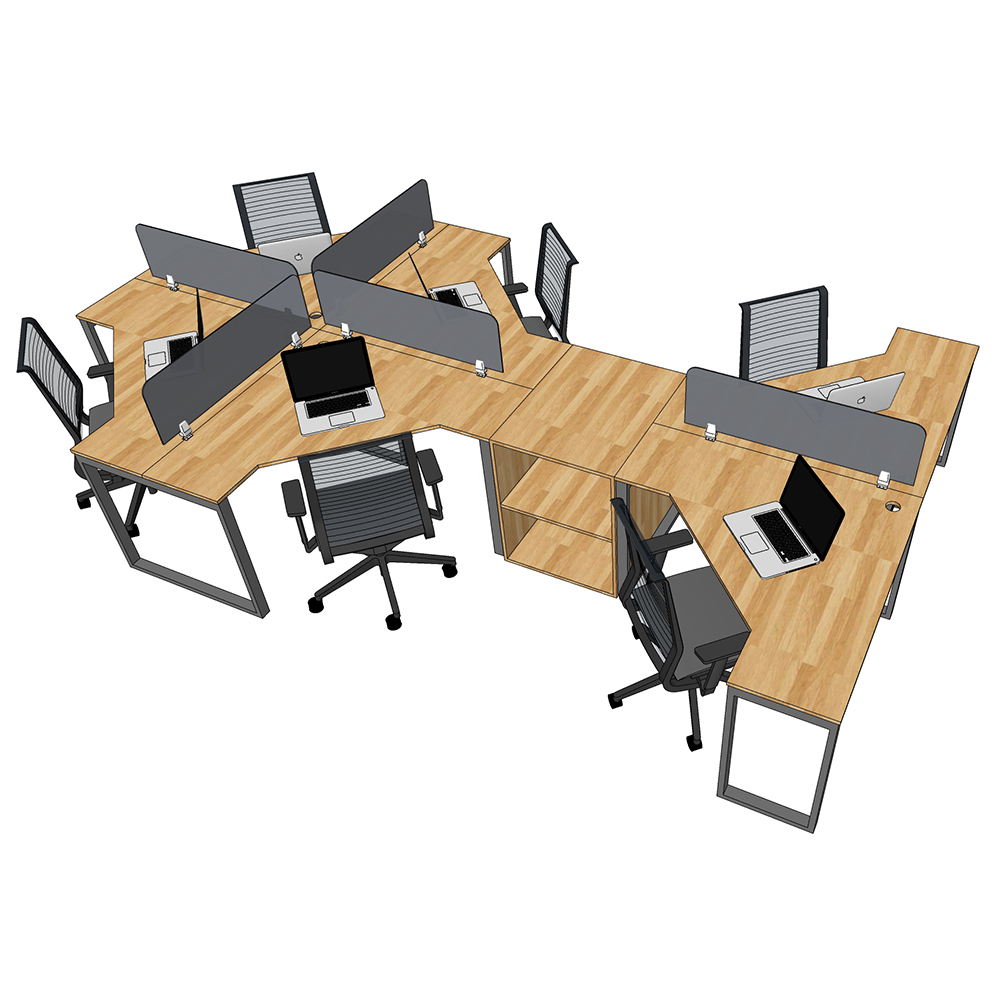 Bàn cụm văn phòng, bàn cụm 6 chổ được sử dụng nhiều tại các văn phòng công sở, nơi nhân viên cần một khoảng không gian riêng để làm việc với những vách ngăn giữa các vị trí tại bàn, Bàn cụm văn phòng, bàn cụm 6 chổ giải quyết được vấn đề đó với chi phí tiết kiệm hơn so với việc mua từng bàn riêng lẻ cho nhân viên.